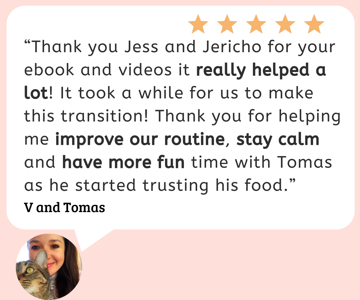 Most importantly, relief that your picky, carb-addicted cat is now a raw diet connoisseur. Hey friends! I'm Jess, and that's my boss Jericho.
